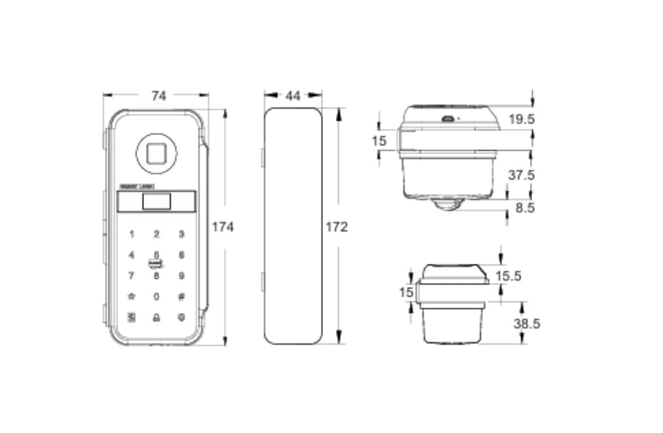 Appearance dimensions: 174(L)×74(W)×72(H)mm
