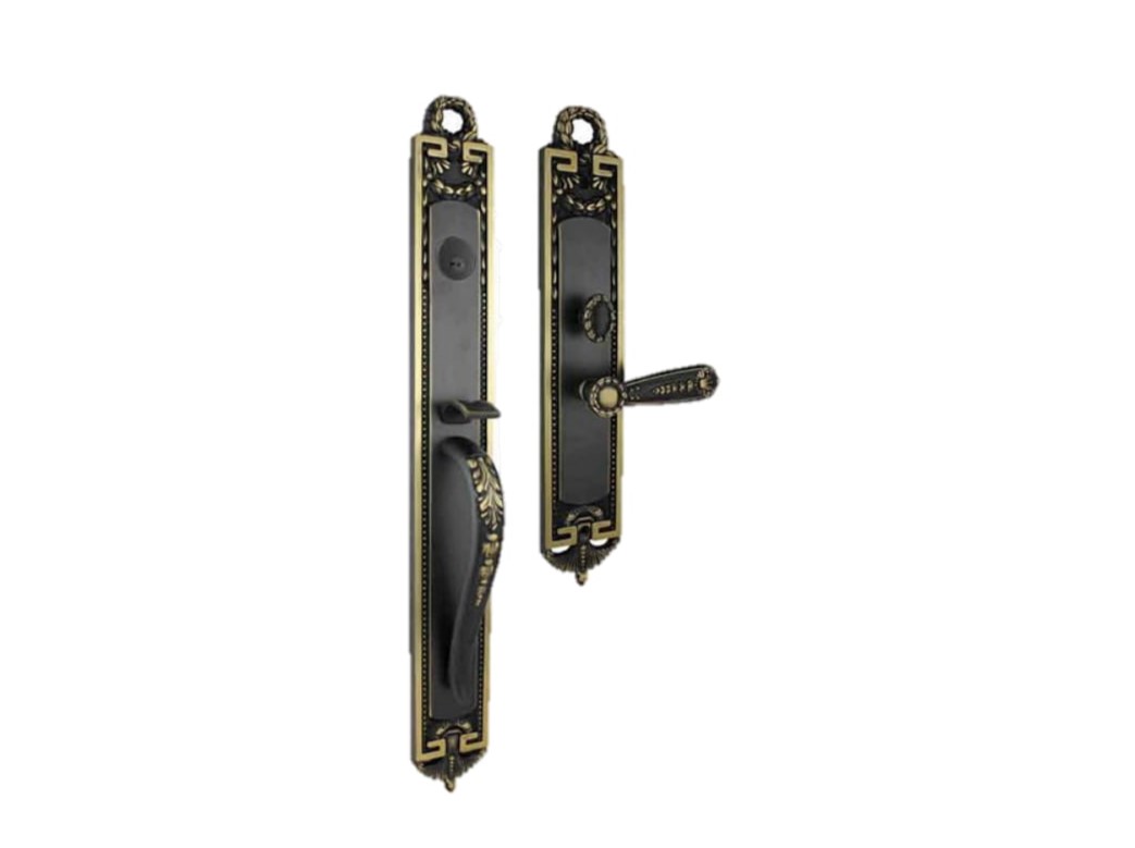 American mortise handleset entrance trim is a stylish and well-crafted contemporary design that is perfect for any home front door.