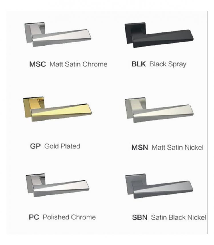 Available finishes: Matt Satin Chrome, Black Spray, Gold Plated, Matt Satin Nickel, Polished Chrome, Satin Black Nickel