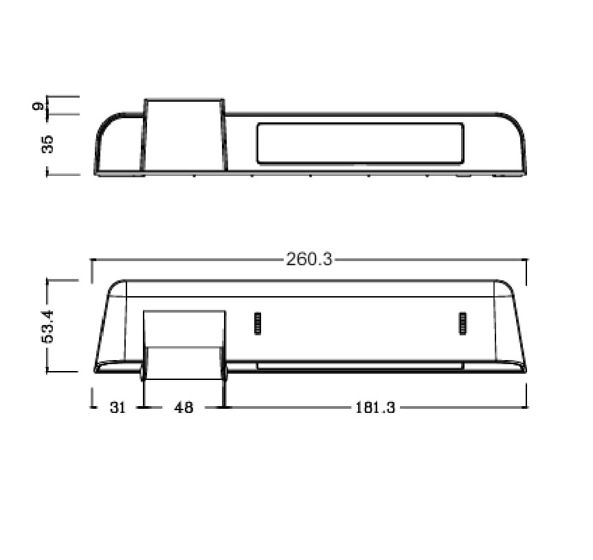 • Product Dimensions: 260.3 (L) × 53.4 (W) × 44 (H) mm