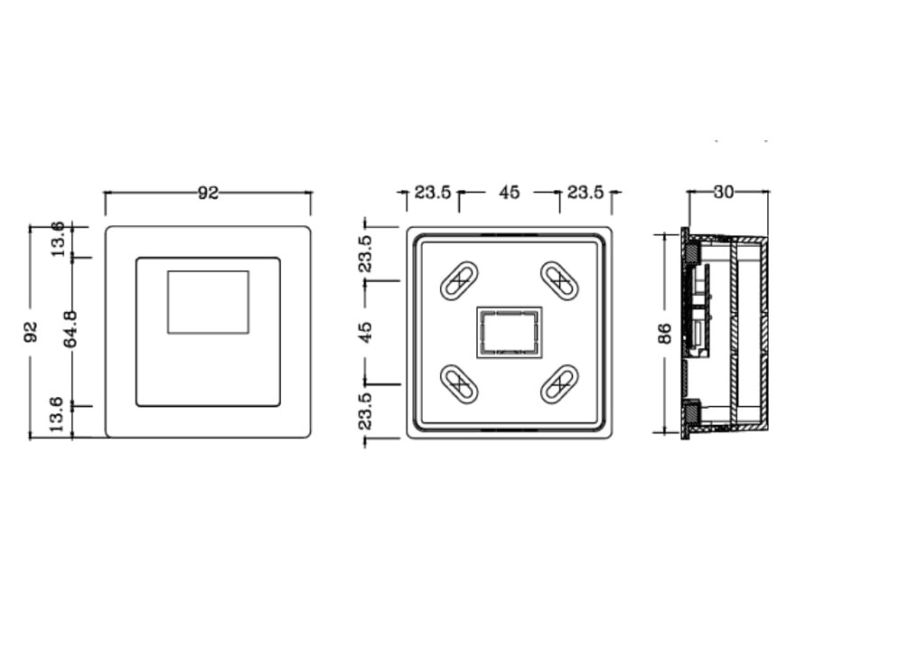 • Cut-out Dimensions: 86 (L) × 86 (W) × 30 (H) mm