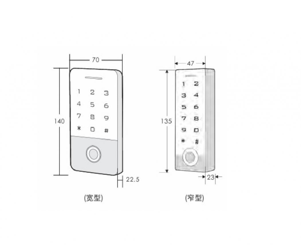 Dimensions: 40(L)×70(W)×22.5(H)mm (wide type) 135(L)×47(W)×23(H)mm (narrow type)