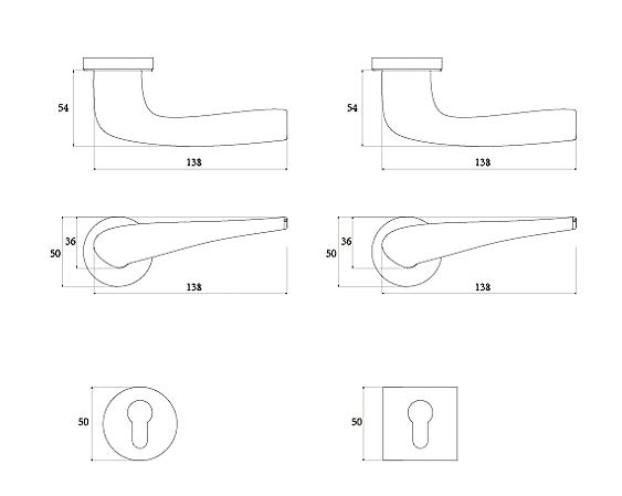 Dimensions : L:138 x H: 54, Fits doors of thicknesses: 35-54 mm