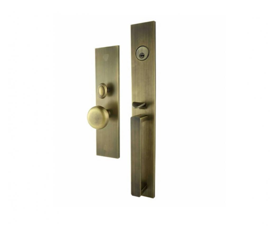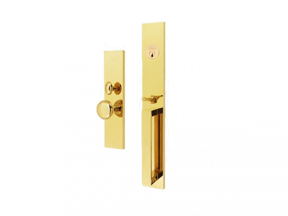 American mortise handleset entrance trim is a stylish and well-crafted contemporary design that is perfect for any home front door.