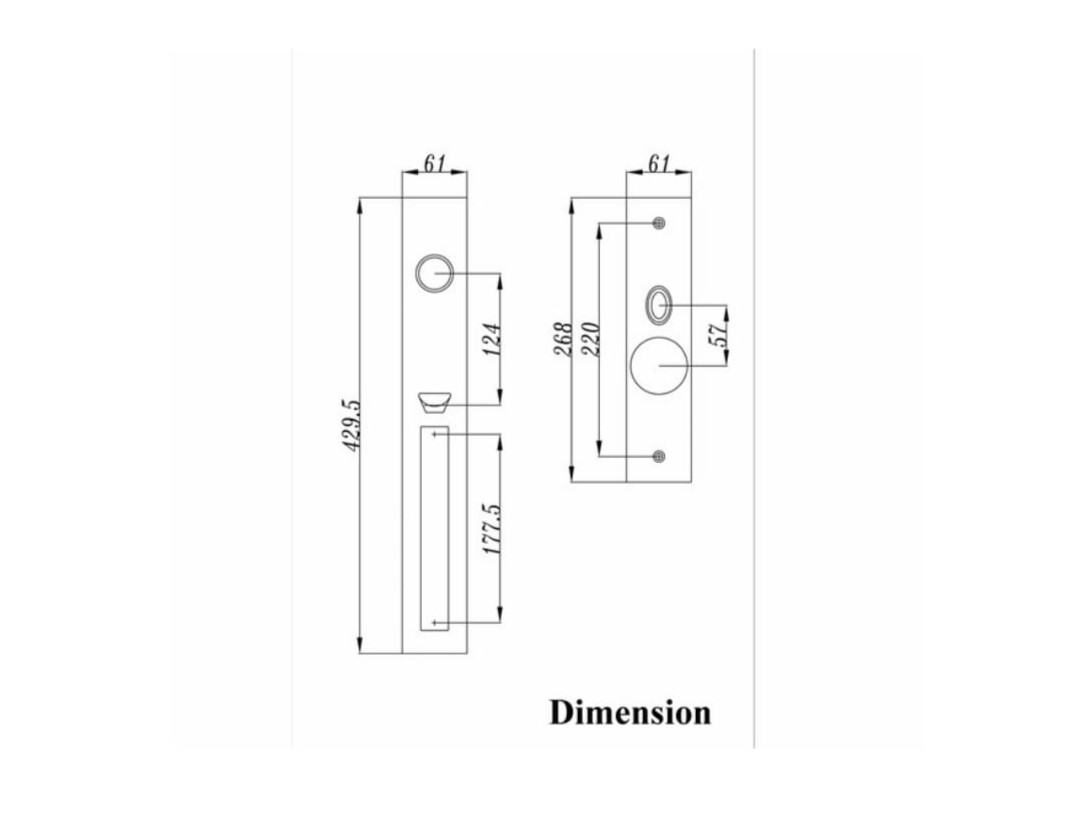 Dimension: Exterior plate: overall height 429.5mm x 61mm x 9mm, Grip Handle: 177.5mm(L) x 42mm (H), Interior plate: overall height 268mm x 61mm x 9mm