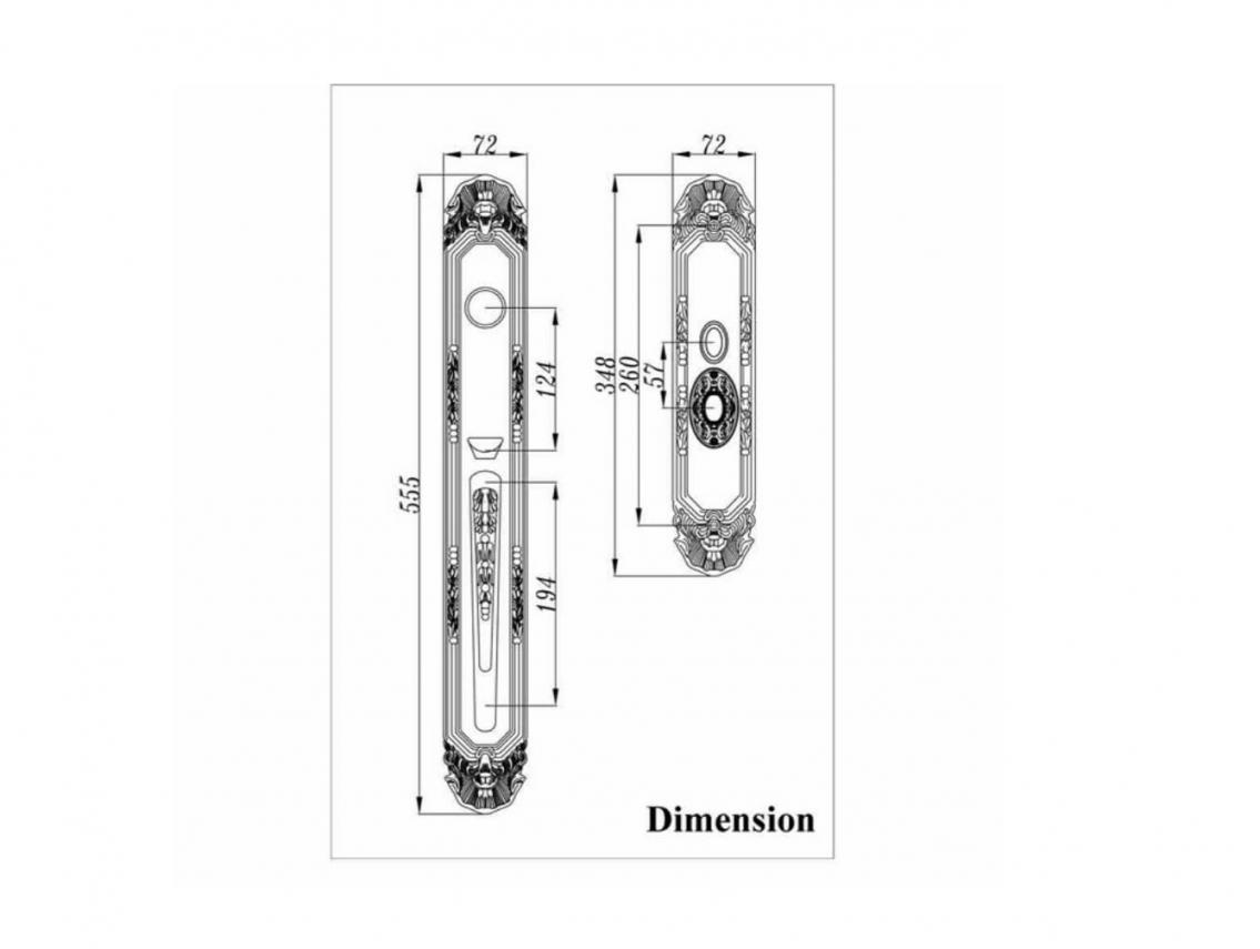 Dimension: Exterior plate: overall height 555mm x 14mm, Grip Handle: 194mm(L) x 75mm (H), Interior plate: overall height 348mm x 14mm