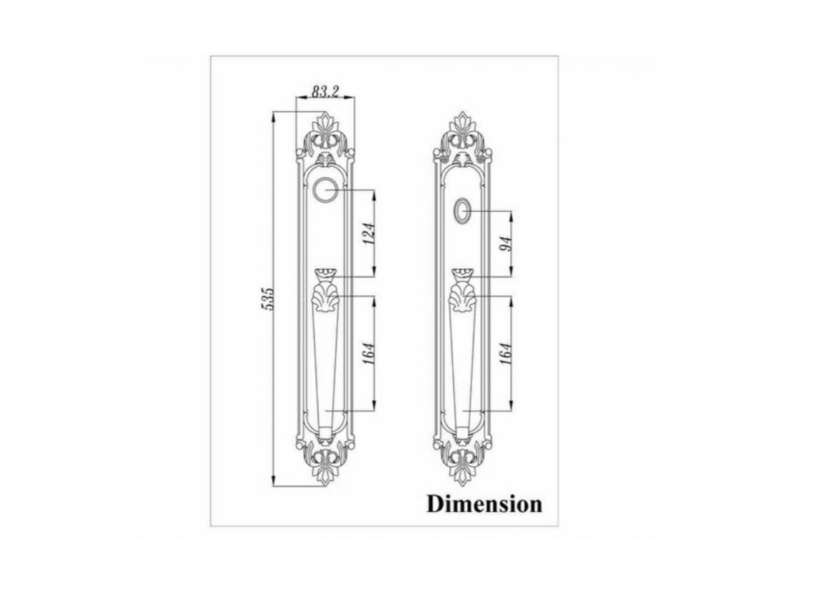 Dimension: Exterior plate: overall height 535mm x 14mm, Grip Handle: 164mm(L) x 75mm (H), Interior plate: overall height 535mm x 14mm