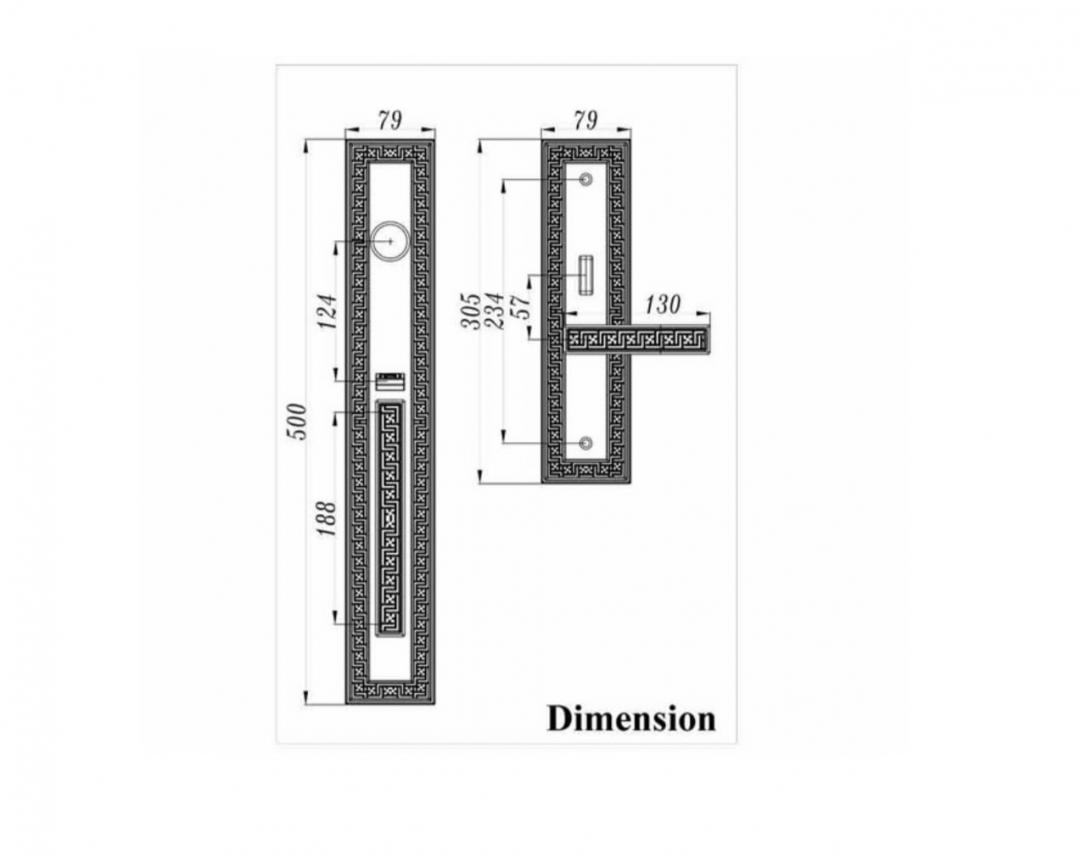 Dimension: Exterior plate: overall height 500mm x 14mm, Grip Handle: 188mm(L) x 75mm (H), Interior plate: overall height 305mm x 14mm