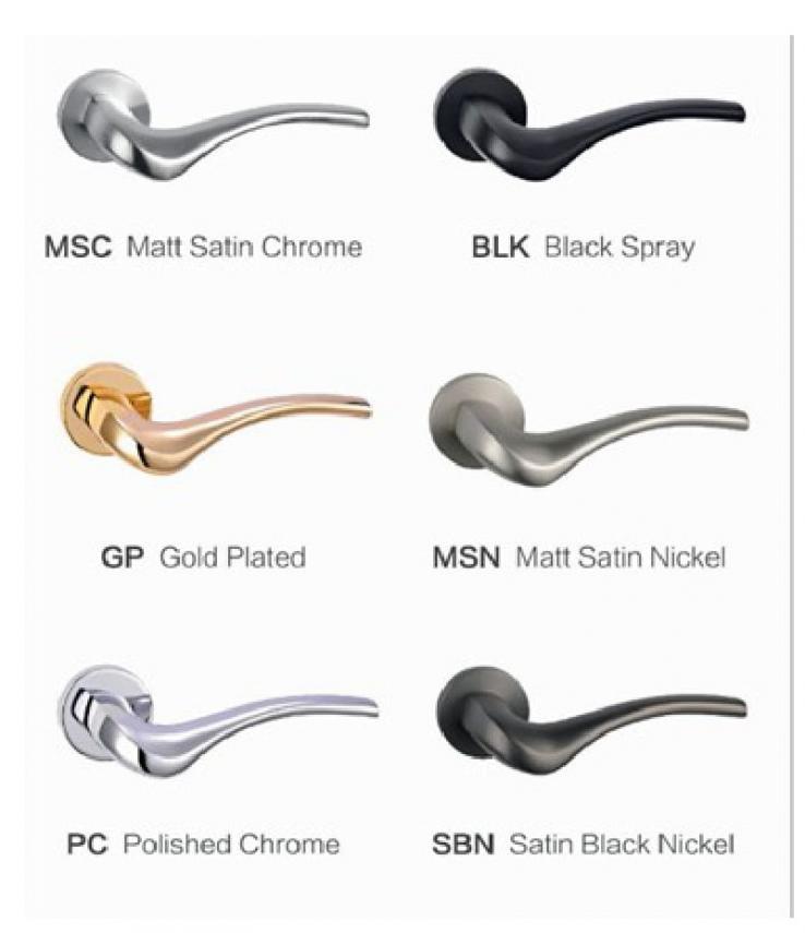Available finishes: Matt Satin Chrome, Black Spray, Gold Plated, Matt Satin Nickel, Polished Chrome, Satin Black Nickel