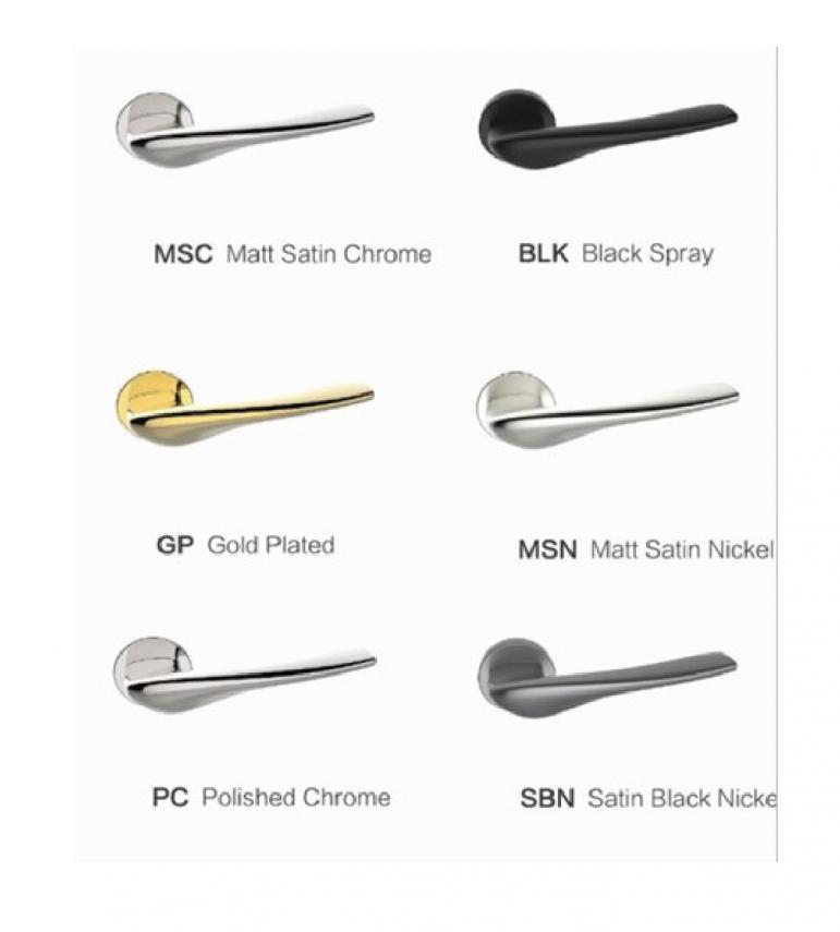 Available finishes: Matt Satin Chrome, Black Spray, Gold Plated, Matt Satin Nickel, Polished Chrome, Satin Black Nickel